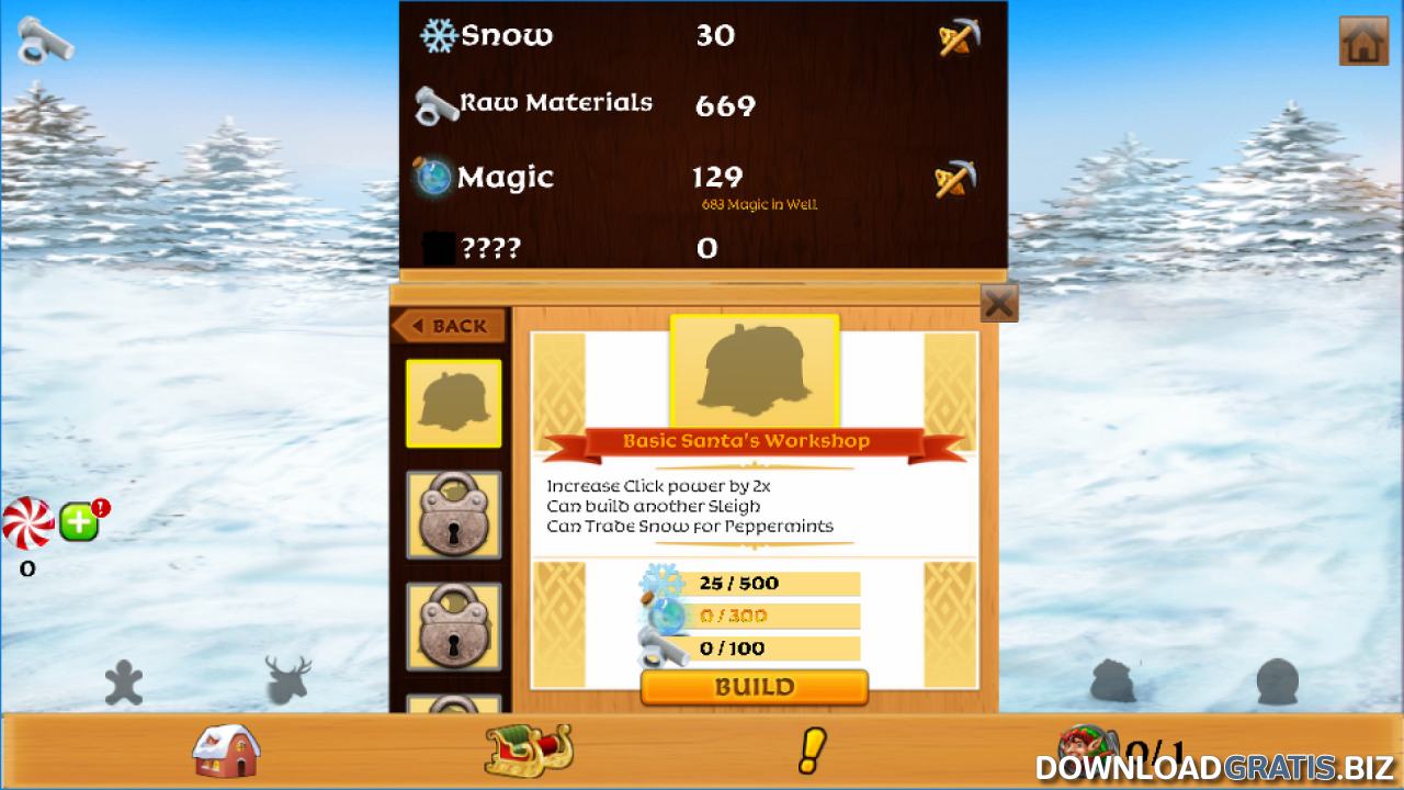 Collect resources, such as snow and magic, and build gift workshops to upgrade them. The player will also need to build sleds that can find more resources, bring more elves, or search for rare artifacts!
